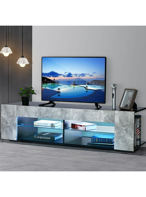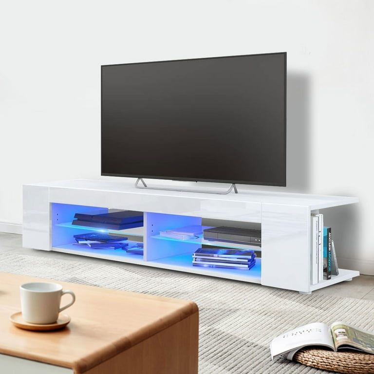 Garosa White Tv Cabinet High鈥慓loss Front Tv Stand Table With Blue Led Light For Living Room Household Supplies Tv Stand Walmart Com